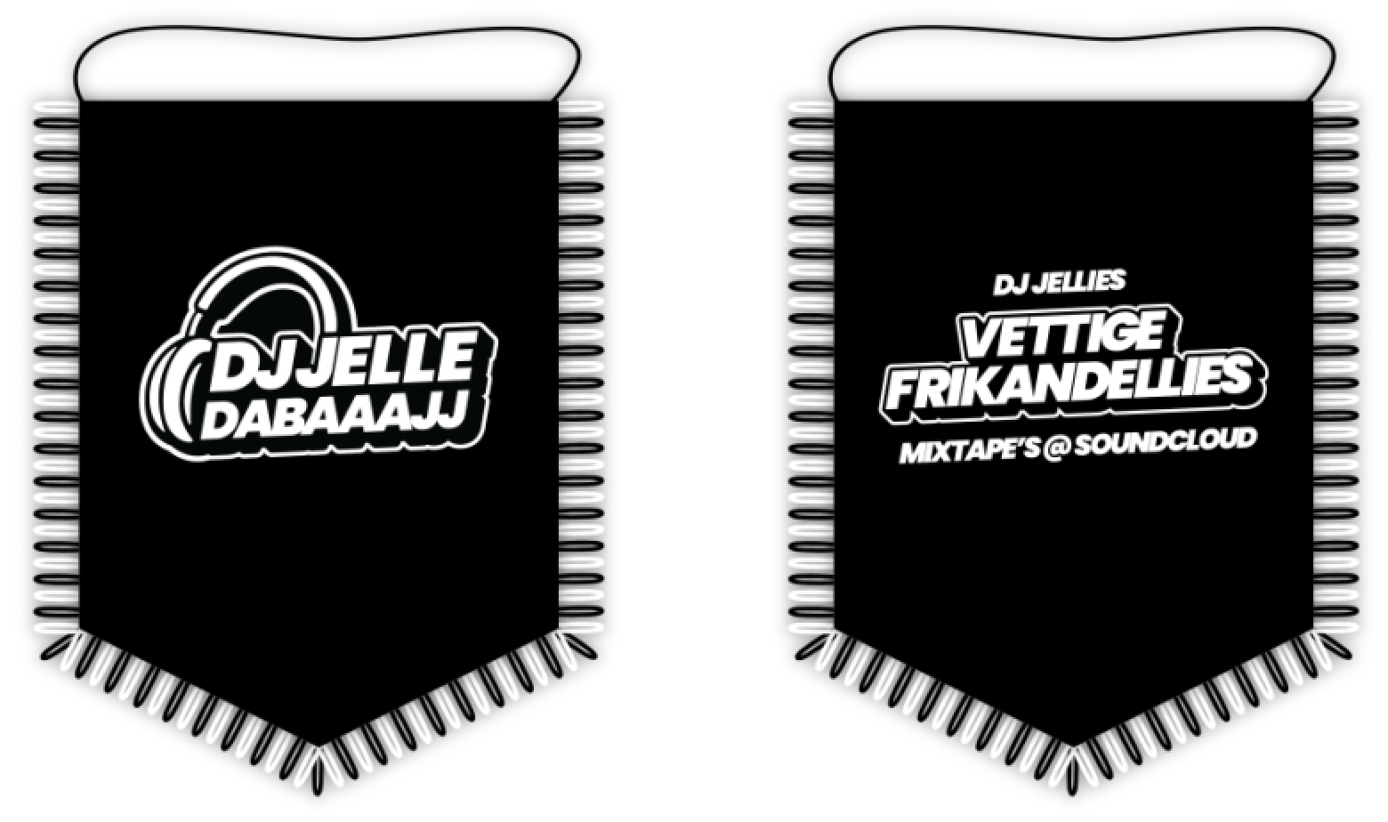 Laat iedereen weten wie de baas van de baan is met de officiële Dj Jelle Dabaaajj vaantje.